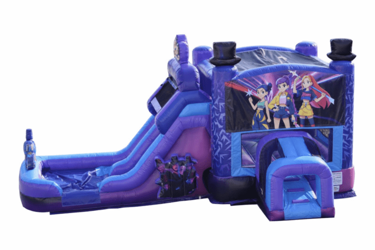 Turn up the energy with the KPop Combo! This vibrant K-pop themed bounce and slide inflatable is perfect for music-loving kids and fans of pop culture. Features a spacious bounce area and attached slide with exciting, trendy design. Great for music-themed birthday parties, school events, and celebrations. Kids love the colorful design and high-energy entertainment. Professional delivery and setup included.